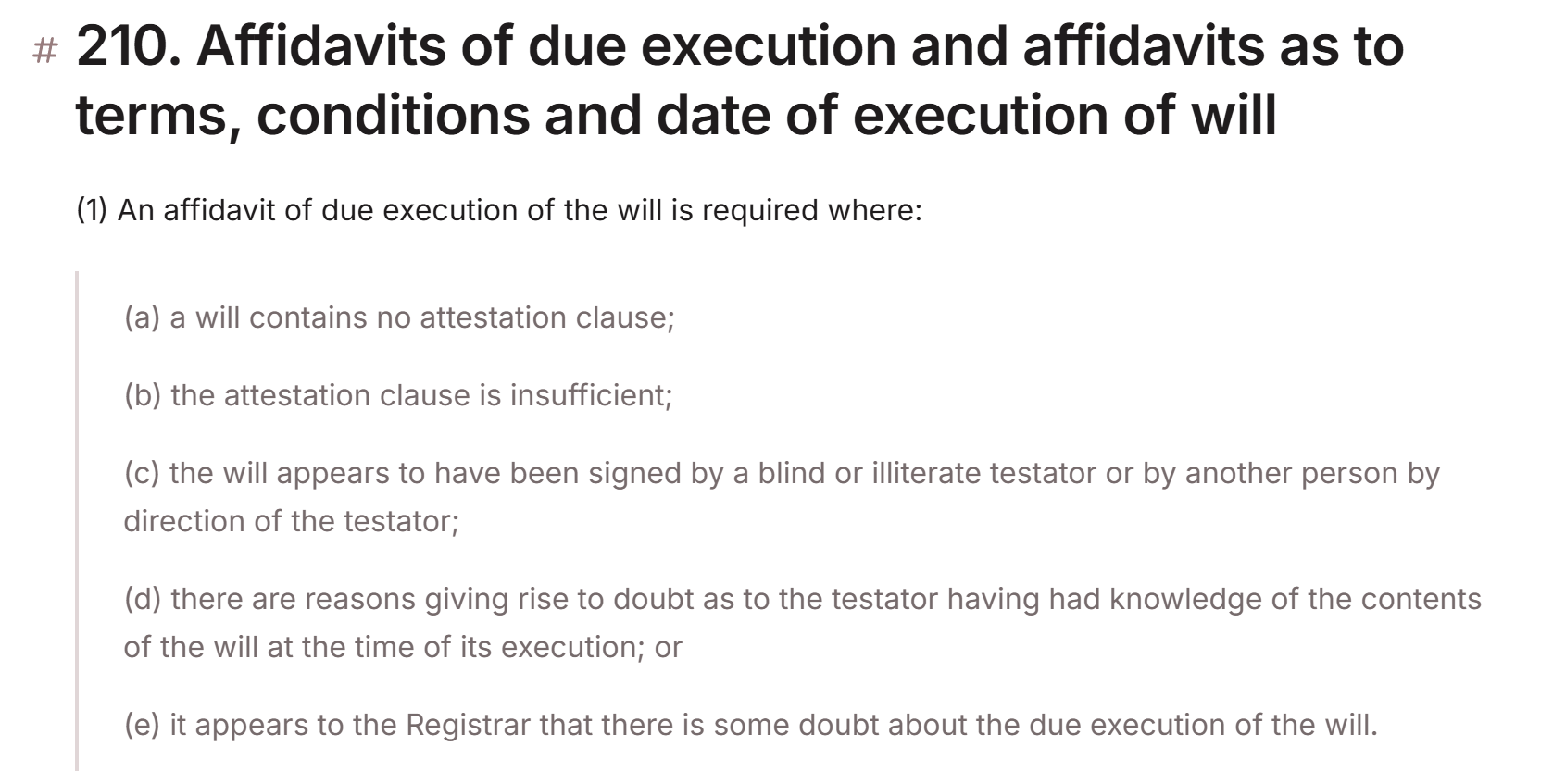 Unfortunately, when the Court requests a witness affidavit, it does not provide the specific reasoning. You will simply be informed that one is required, without details such as “the Will requires a witness affidavit because it was signed one month before the deceased passed away”. This understandably has led to speculation about the reasons behind the request.